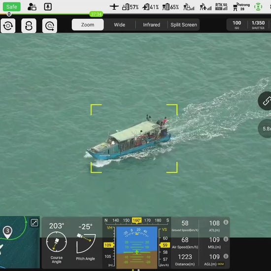 Triple-sensor gimbal featuring 4K 20x optical zoom, 12MP wide-angle, and 640×512 high-resolution infrared — all on a 3-axis stabilized platform with integrated laser distance measurement radar. Built for night ops, SAR, perimeter security, and thermal inspection. Compatible with Dragonfish Standard and Pro.